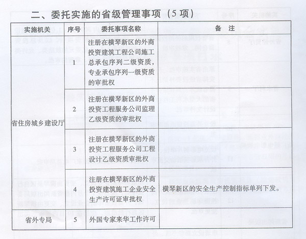 | 名稱: | 廣東省第一批調整由橫琴新區管理委員會實施的省級管理權限事項目錄 | ||