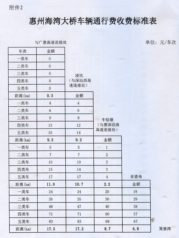 2.惠州海灣大橋車輛通行費收費標準表 ? ?
