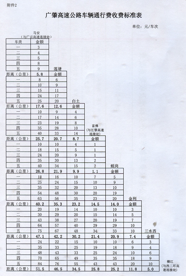 2.廣肇高速公路車輛通行費收費標準表 ?