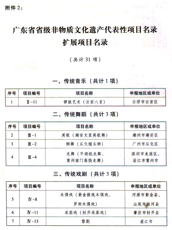 2.廣東省省級非物質文化遺產代表性項目名錄擴展項目名錄 ? ? 廣東省人民政府 2015年11月10日 ? ?