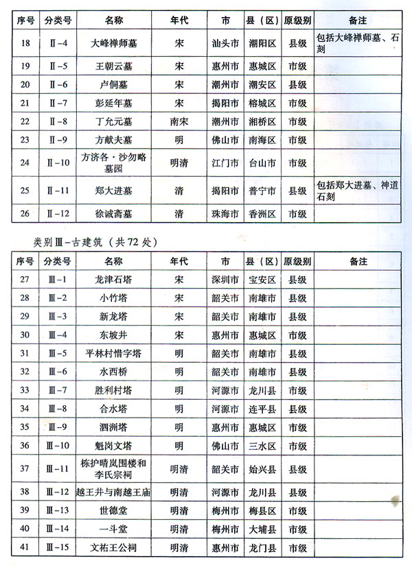 ? 廣東省人民政府關于批準并公布第八批 廣東省文物保護單位名單和第一批 廣東省水下文物保護區名單的通知