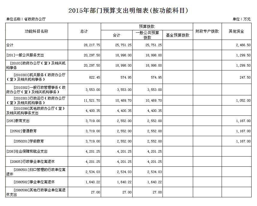 2015年支出預算28,217.75萬元,其中:基本支出20,577.75萬元,占預算撥款支出的72.92%;項目支出7,640.00萬元,占預算撥款支出的27.08%。(支出明細詳見附表)