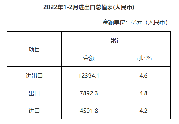 廣東省外貿(mào)進(jìn)出口總值表(2022年1-2月)