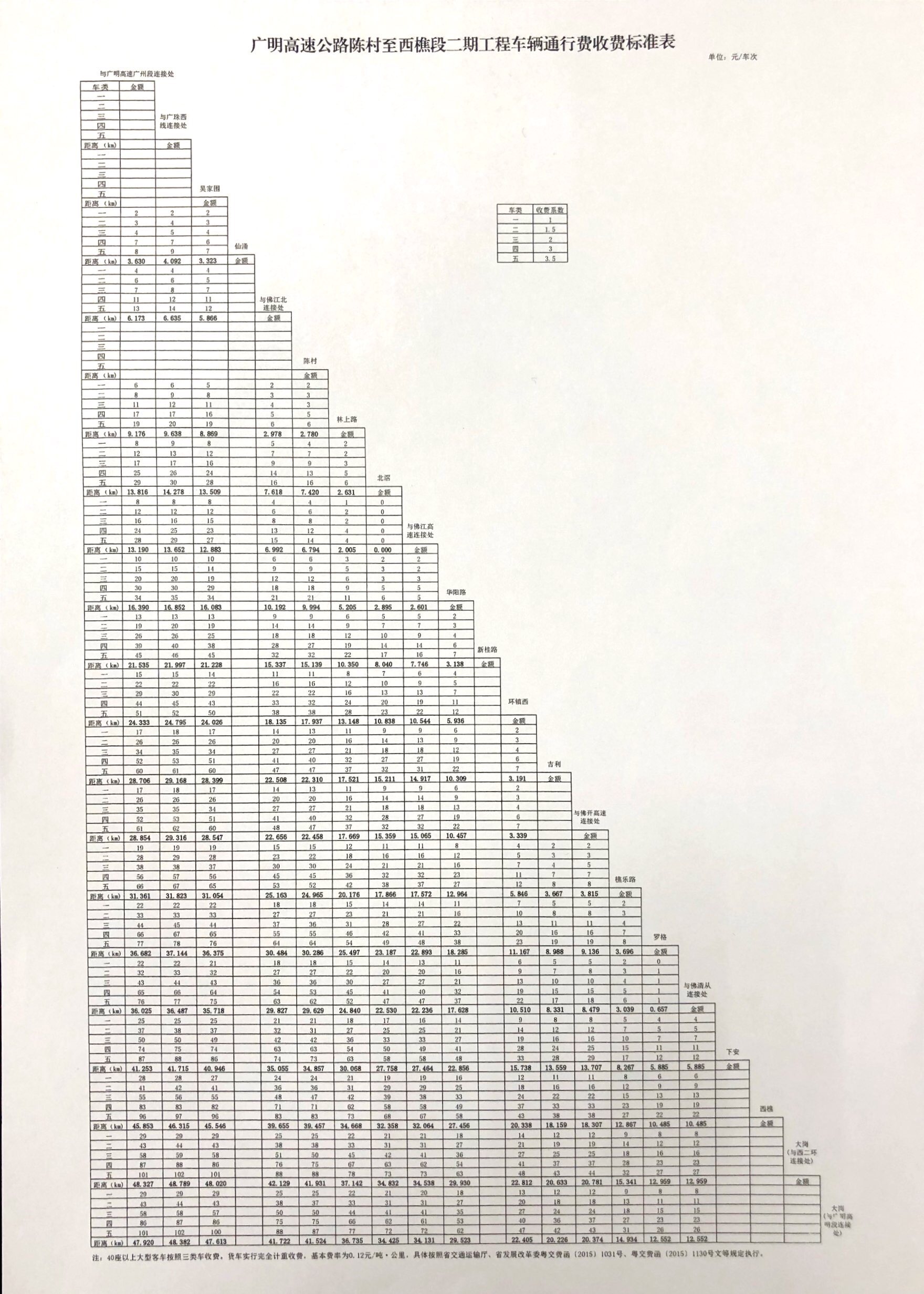 2.?廣明高速公路陳村至西樵段二期工程車輛通行費收費標(biāo)準(zhǔn)表