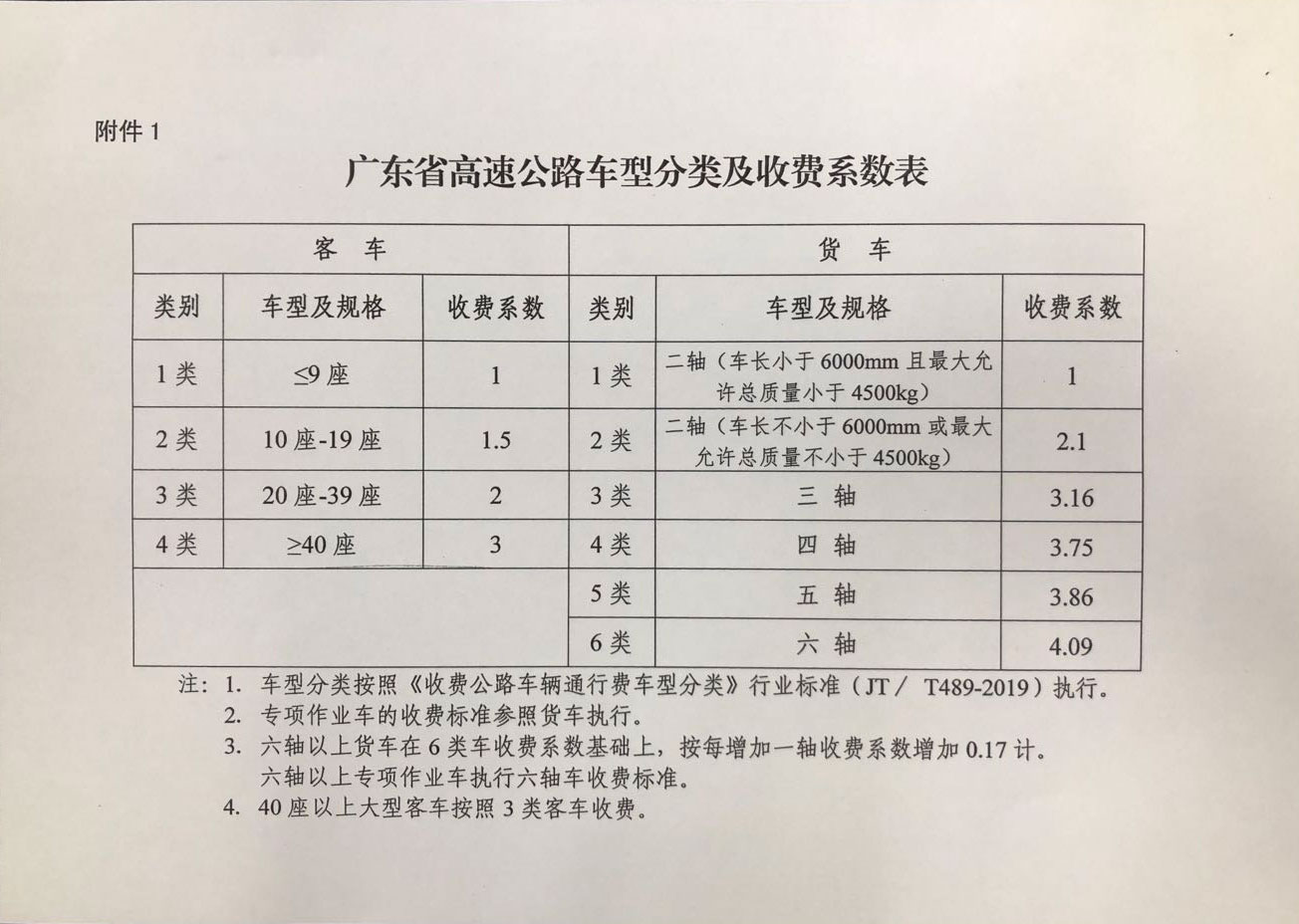附件:1.廣東省高速公路車型分類及收費系數表